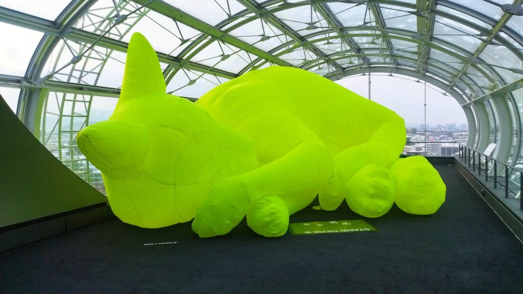 ouちゃんはインフレータブル(空気膜)彫刻作品で、日向ぼっこしているような姿を見ることができます。