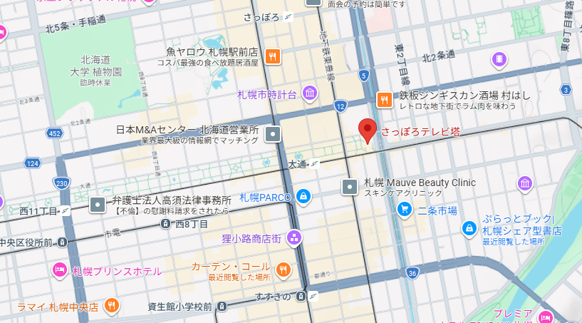 さっぽろテレビ塔は札幌中心部、大通公園にある電波塔で1957年開業で高さは144mです。
